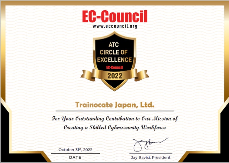 2022年10月31日に EC-Council(The International Council of E-Commerce Consultants:以下、EC-Council)より発表の 「Global Awards 2022」において「EC-Council ATC Circle of Excellence Award」を受賞しました。